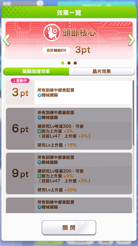 各個核心的「驅動加速」效果!「機械賽馬娘」具備頭部、胸部、腿部等核心,